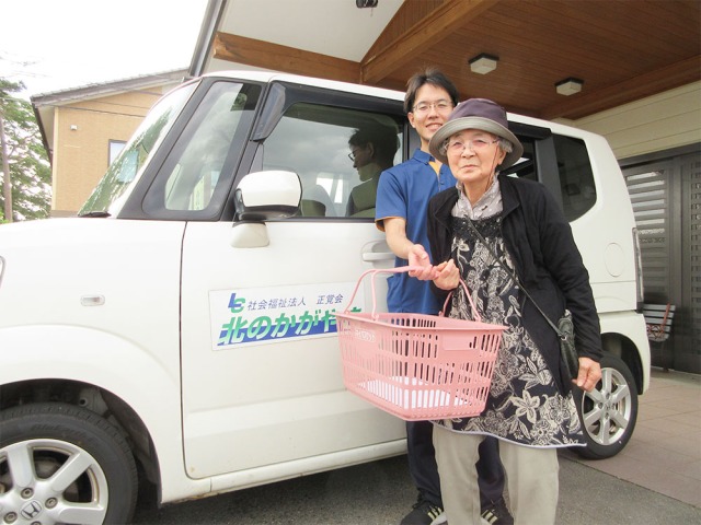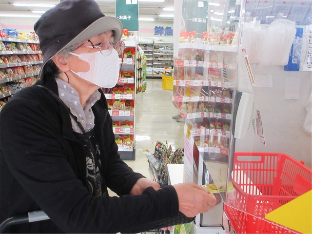 レジに並んだA様は、自分でお財布を出し会計をします。少しお手伝いが必要な時は、スタッフがそっと支援します。お金を出すのを手伝ったり、重い荷物を運んだり・・・。A様も安心してお買い物ができるようです。自分らしい生活を続けながら、毎日がさらに充実するように支援を行っております。