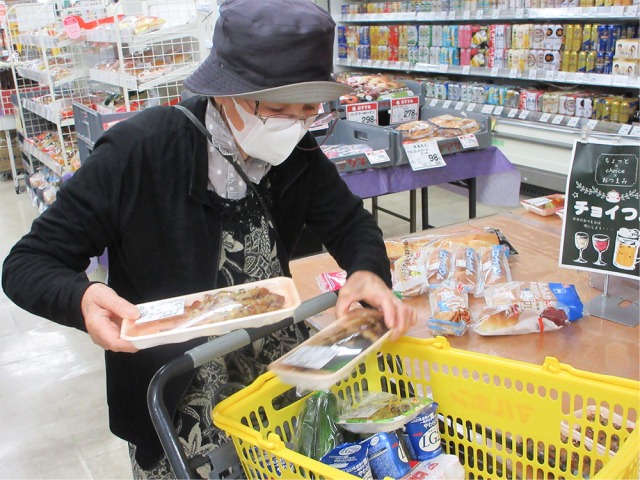 買い物先は、A様が行き慣れた近所のスーパーです。 A様からカートを押していただき、お店の中をゆっくりと歩きながら商品を選びます。
