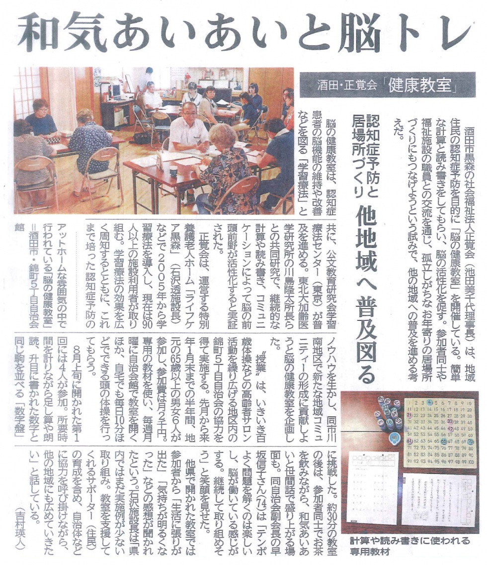 社会福祉法人正覚会では、地域住民の認知症予防を目的に”脳の健康教室”を開催しています。
