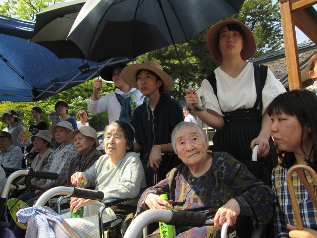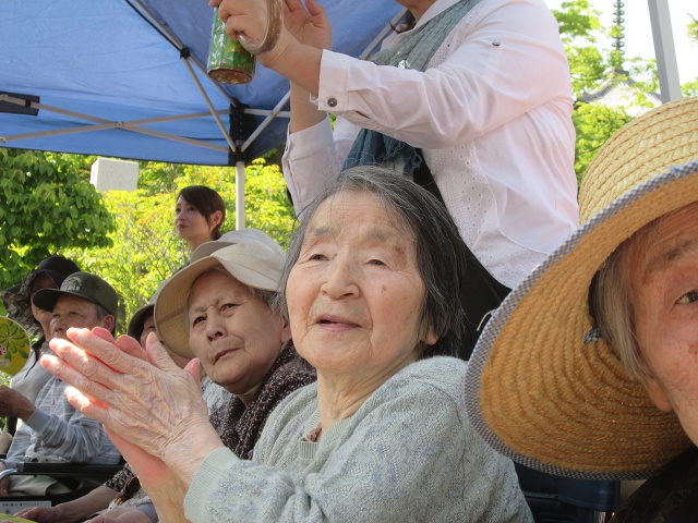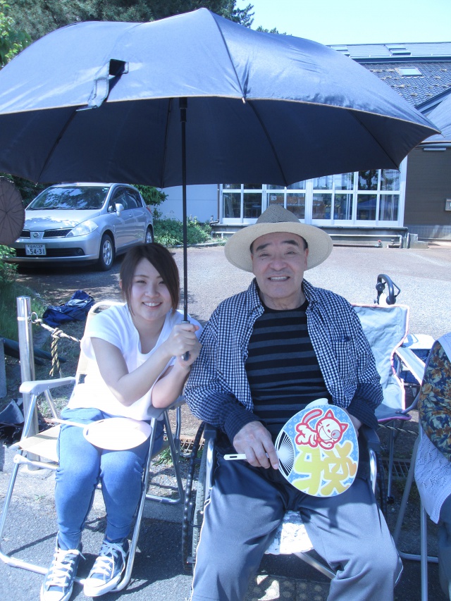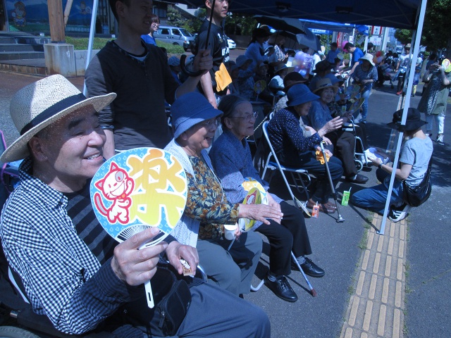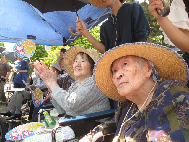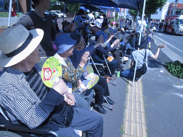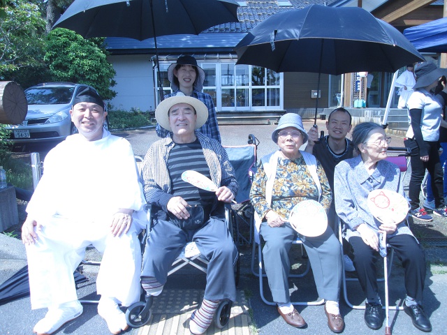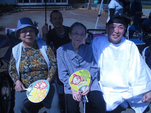 「祭りはいいの〜」と、ご利用者様の笑顔も溢れ、皆さん一様に祭りの雰囲気を楽しんでいらっしゃいました。