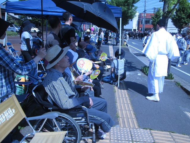 日差しも強くなって参りましたので、今年はテントを張って椅子を用意し、ゆったりとお祭りの行列を見学できました。