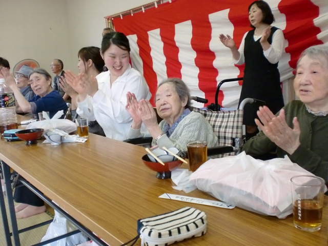 職員4名と看護職員1名が付き添い、賀詞の贈呈、黒森保育園の園児による歌や踊りや地区の方による踊りなどの余興も楽しんできました。