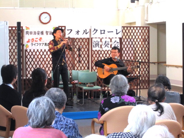 来訪いただいての演奏会なので、入所者様やデイサービスご利用様とたくさんの皆様で鑑賞することができて大変嬉しく思いました。