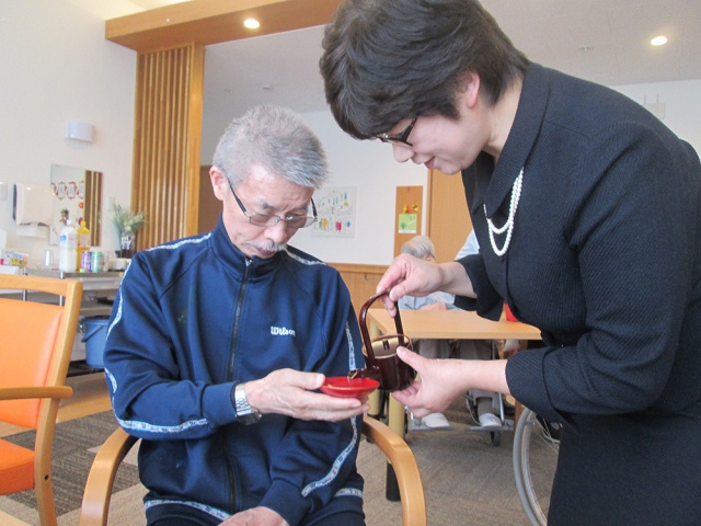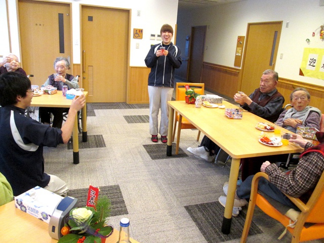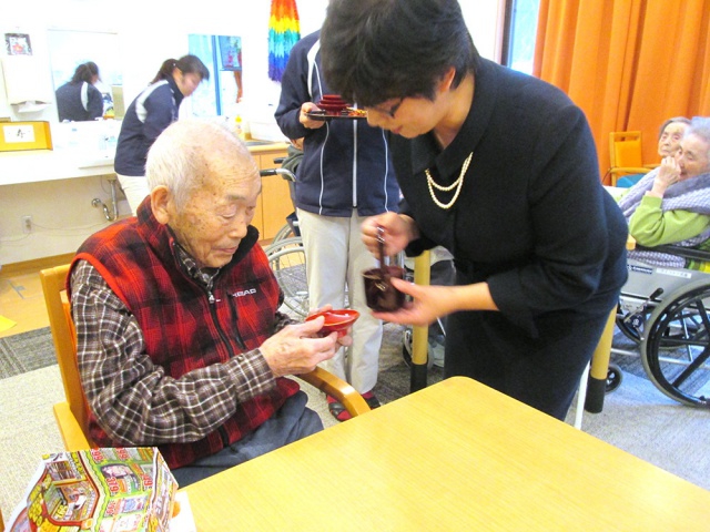 施設長から新年の挨拶があり、その後ご利用者にお屠蘇が振る舞われました