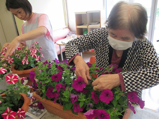花がらを摘むと、摘んだところから脇芽を出して、株も大きくなります。多花性の植物なので、毎日の手入れが必要でしたが、ご利用者より「毎日咲かせてくれる綺麗な花に、作業のやり甲斐があったよ。」と花のお世話をしてくれたご利用者が話してくれました。