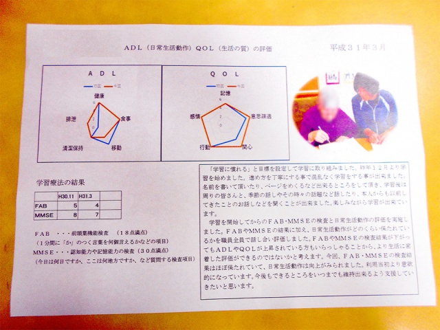 学習療法の月次検討会を通して職員間での活発な意見交換ができており、目標を達成するためにはどうしたらいいかなど、日々の業務の中でも話し合うことができ、個々のスキル向上に活かされております。