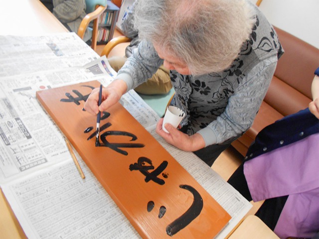 始めは「俺はしなくていい」と乗り気ではなかったですが、いざ板を持ちペンキと刷毛を渡すと、慣れた手つきで塗り始めます。真剣な表情で丁寧に塗り進めていくその姿は、とても生き生きとされていました。それまではデイサービスの利用に対しても乗り気ではなかったですが、今では「また宜しく頼むの」と話されるようになり、今ではレクリエーション活動も積極的に参加されています。