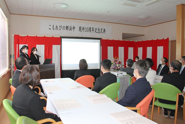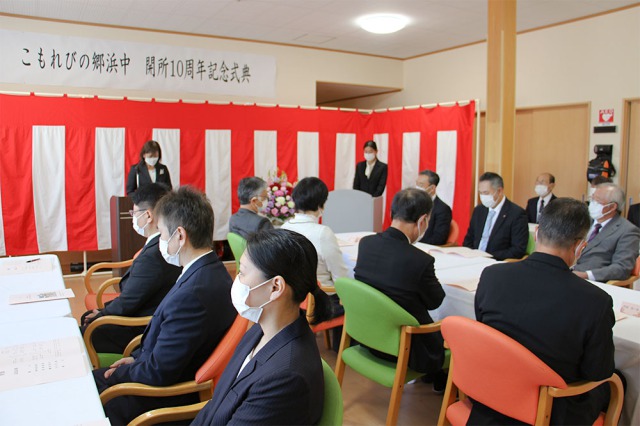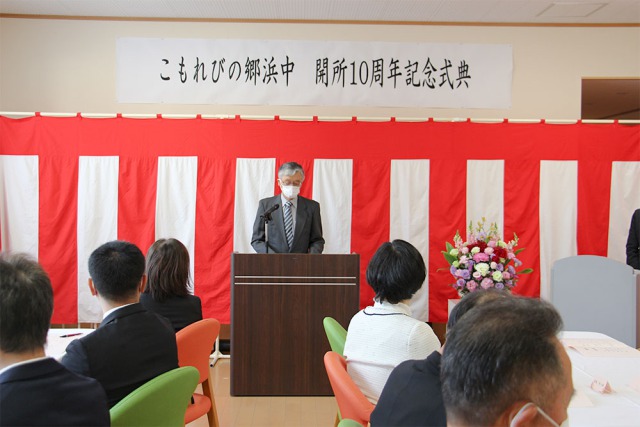 この節目の年に、地域の皆様に感謝の想いを込めて、令和4年11月5日(土)にこもれびの郷浜中 開所10周年式典を開催いたしました。