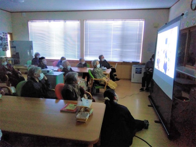 スライドには、こもれびの郷浜中が開所に至るまでの経緯や開所当初の出来事や思い出を振り返り、現在の取り組みとご利用中の様子についてお伝えしました。