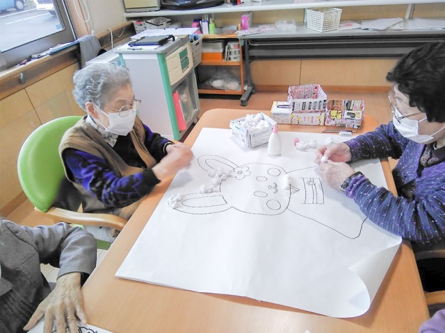 根気のいる作業ですが、ご利用者の皆さんはとても丁寧に貼ってくださいました。