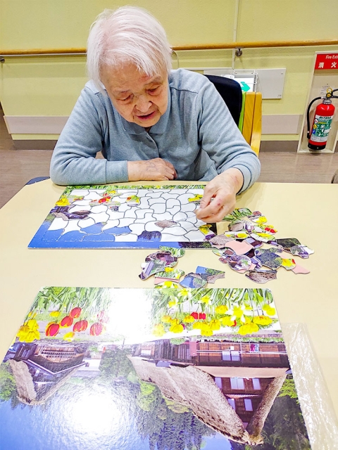 「やってみると、あんがい難しいもんだなやの~」と、趣味の一環であるパズルに取り組まれています。