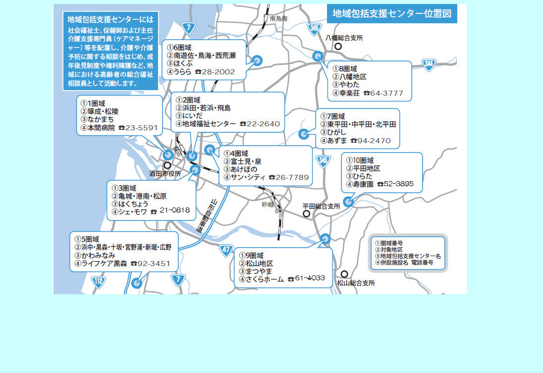 | 酒田市地域包括支援センターかわみなみ | 電話 | 0234-92-3451 |