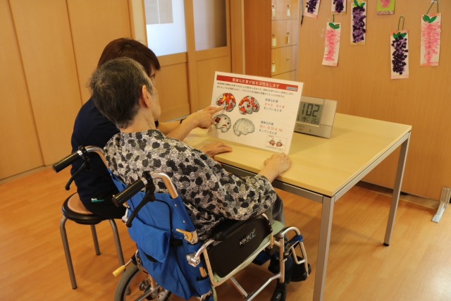 認知症に対する理解と適正なケアの推進を図るために、平成23年4月より「学習療法」を開始し、希望者を対象にご利用日に合わせて、一人あたり20分程度の学習を実施しております。